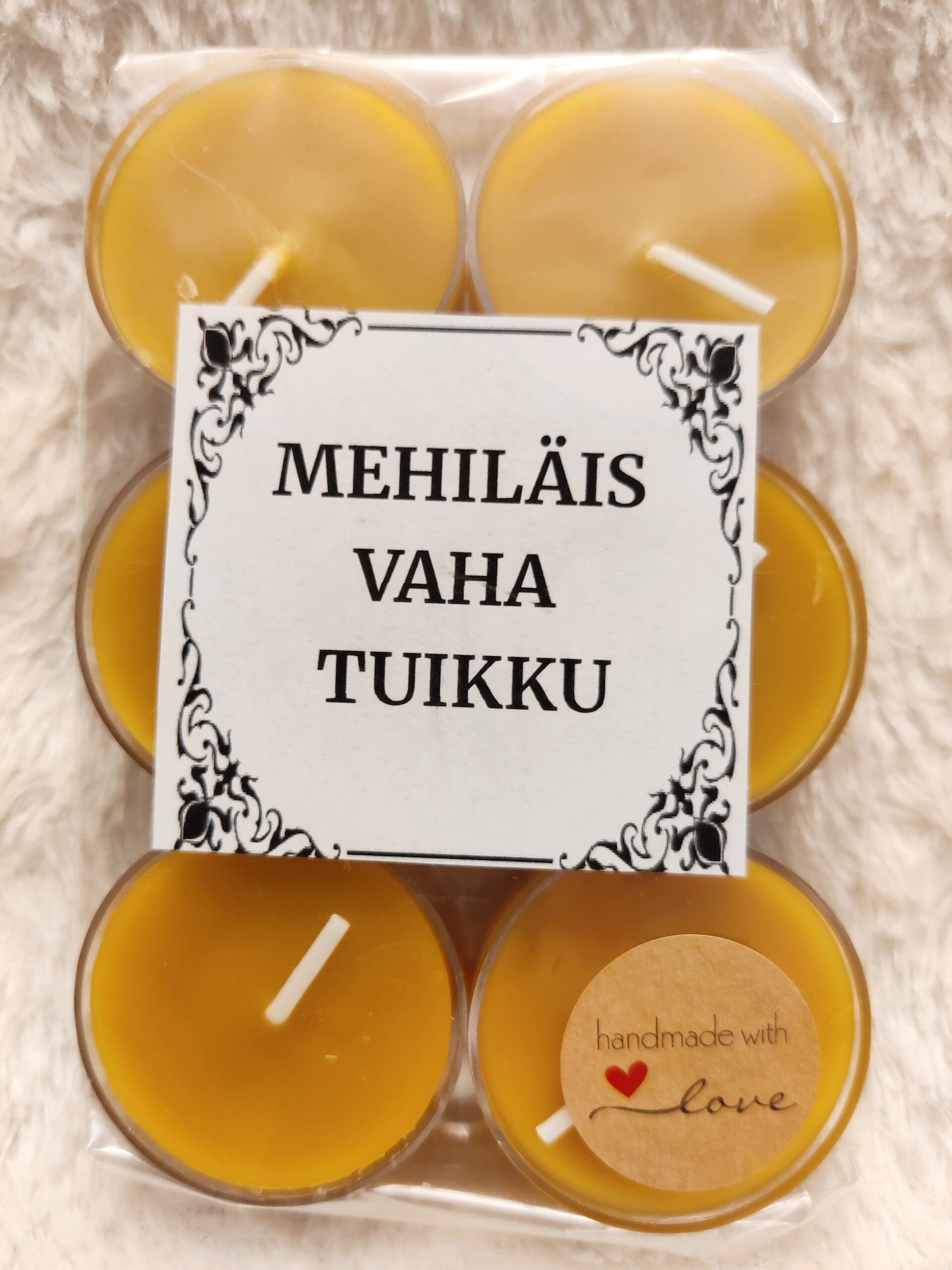 Tuikkukynttilät ovat käsin valettu 100% mehiläisvahasta.